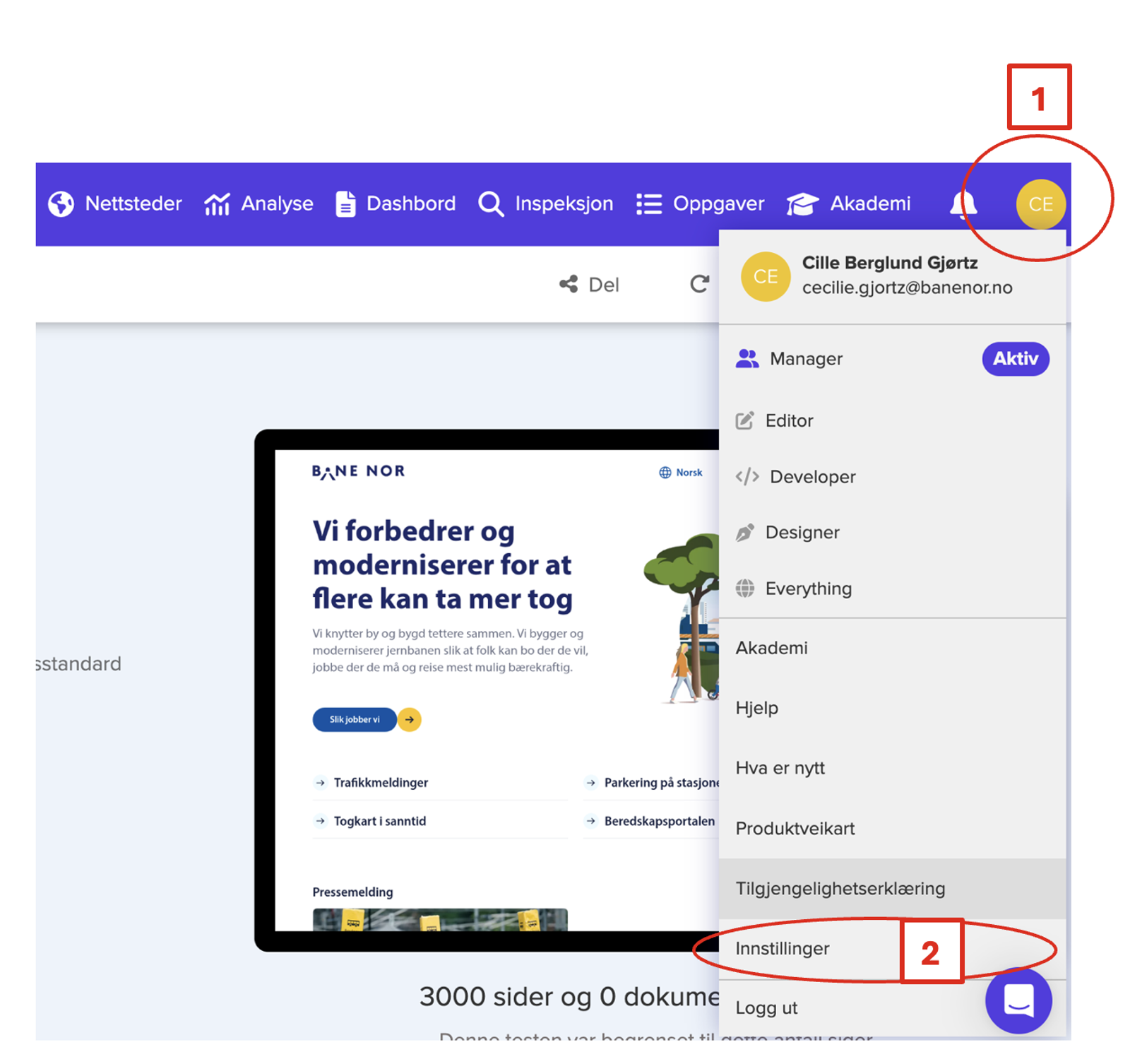 NB! Det kan ta litt tid når du nettopp har publisert siden, så dersom du får feilmeldingen "Siden finnes ikke" eller tilsvarende, prøver du igjen litt senere. - Etter få minutter, har Silktide scannet siden.