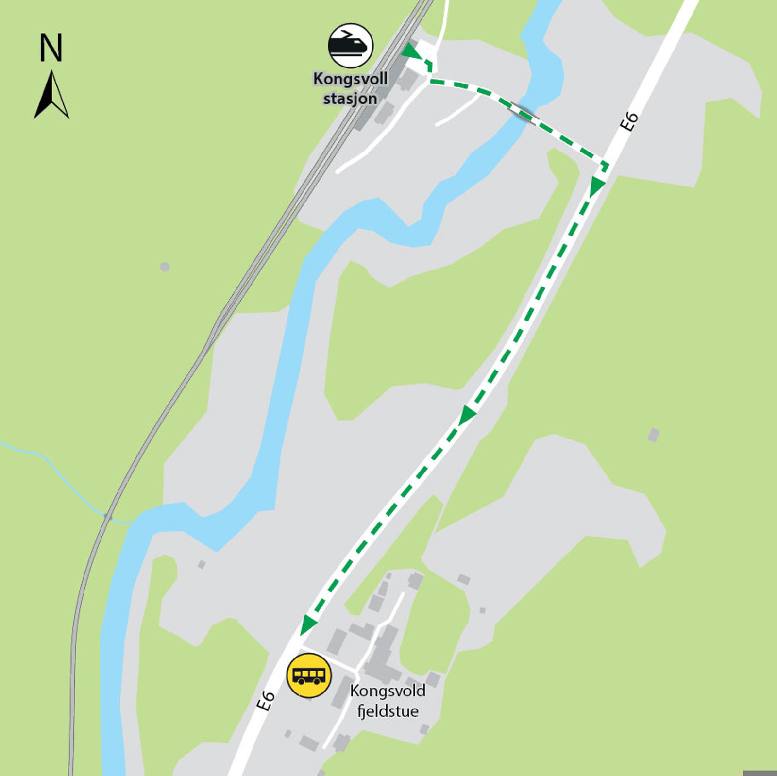 Bussene kjører fra bussholdeplassen Kongsvold fjeldstue. Gangavstand