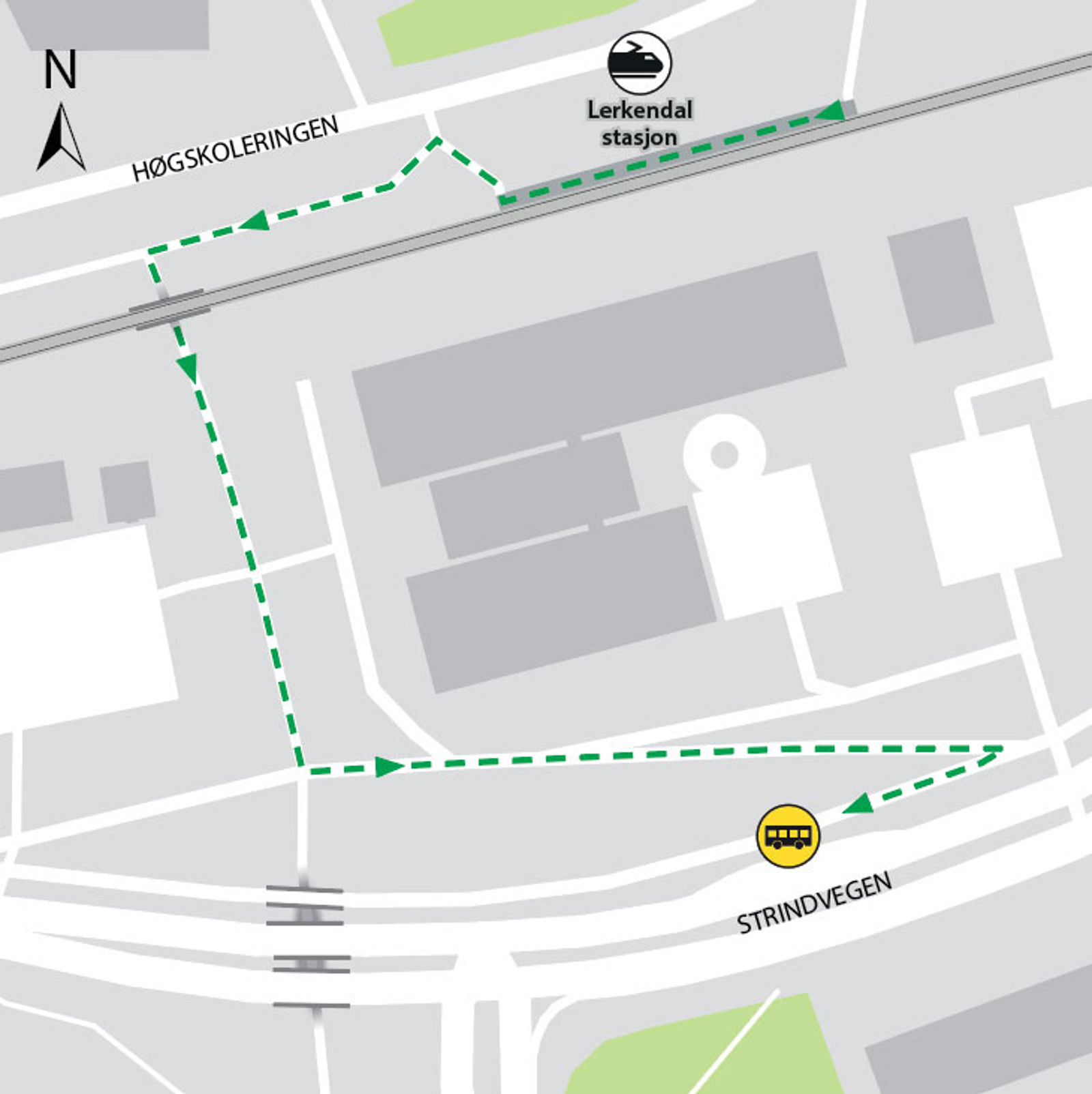 Bussene kjører fra bussholdeplassen Lerkendal gård. Gangavstand til holdeplassen er ca. 200 meter.