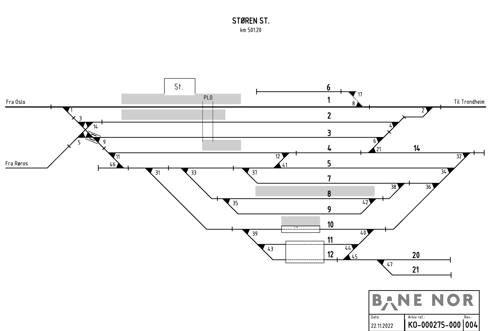 | 20 | Øvrige spor | 156 | Hensettingsspor gule maskiner | |||||